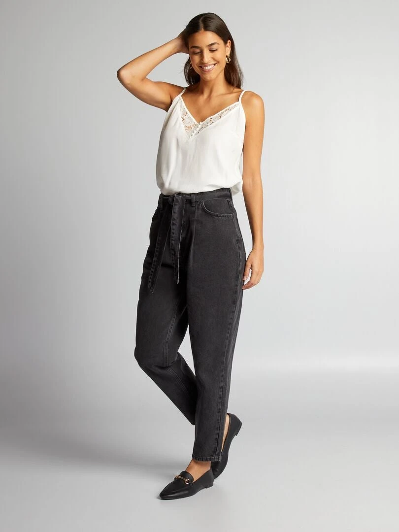Vaquero Recto Paper Bag De Talle Alto – NIEVE_NEGRA