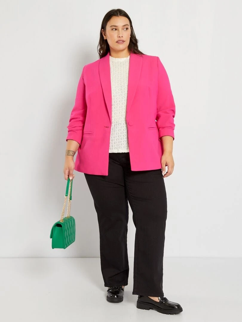 – Nuestra modelo lleva una talla 50 Este producto eco-wash está confeccionado con una técnica de lavado con menor consumo de agua y de productos químicos.
