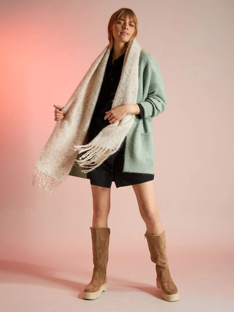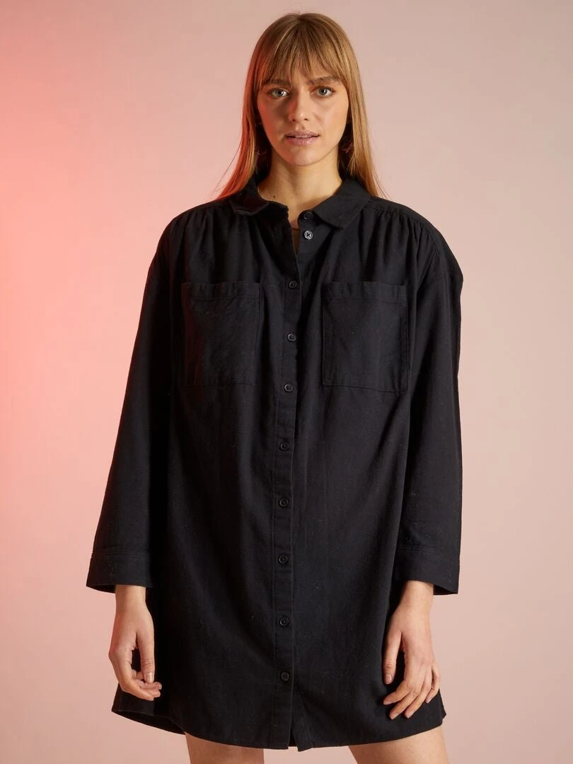 Este vestido de franela aporta una calidez reconfortante para esta temporada.