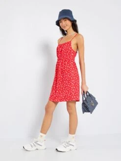 Vestido Corto Con Motivos – ROJO
