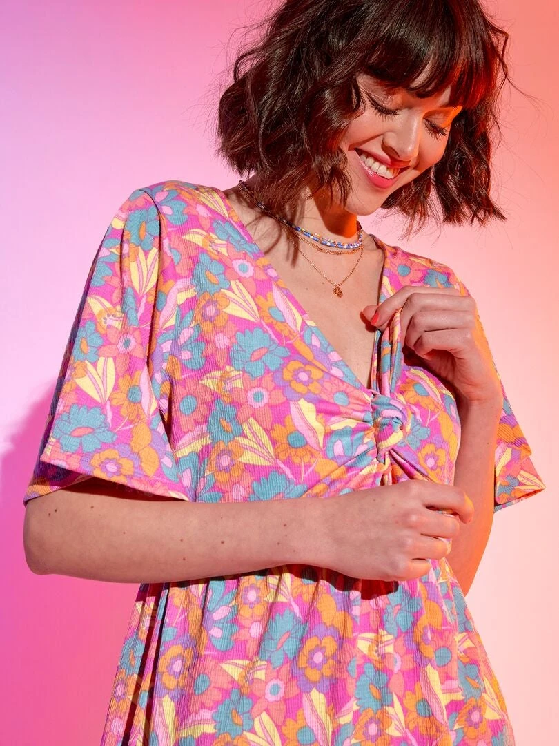 Un vestido corto y elástico de punto gofrado. ¡Te encantará sentir una libertad de movimientos absoluta con él!