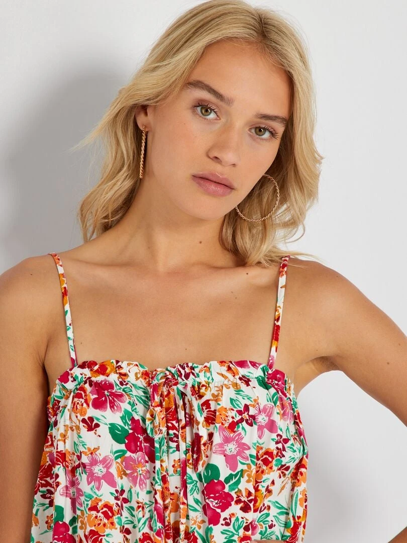 ¡El vestido de flores es la prenda imprescindible para este verano! Su material es ligero y vaporoso, te encantará.