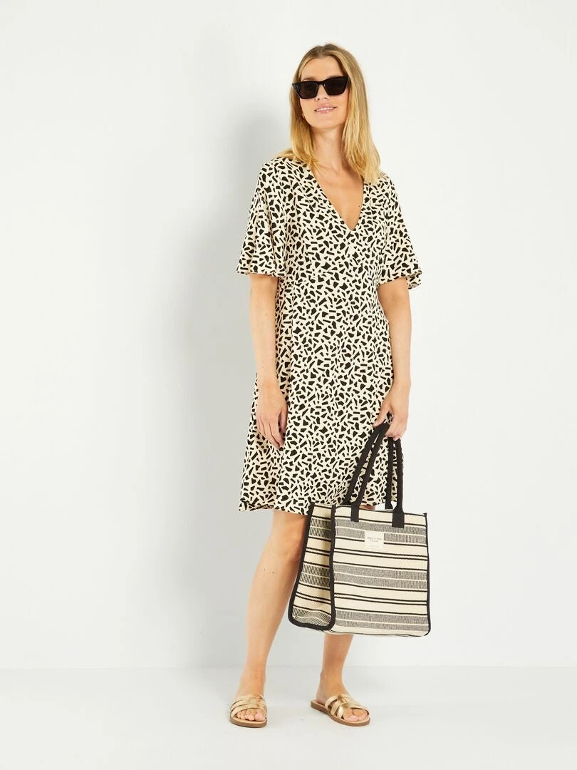 Un vestido corto de mangas con volantes para un confort óptimo.