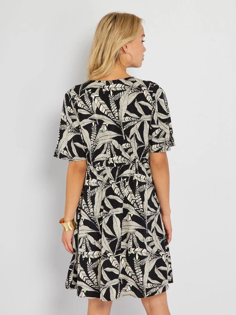 Un vestido corto de mangas con volantes para un confort óptimo.