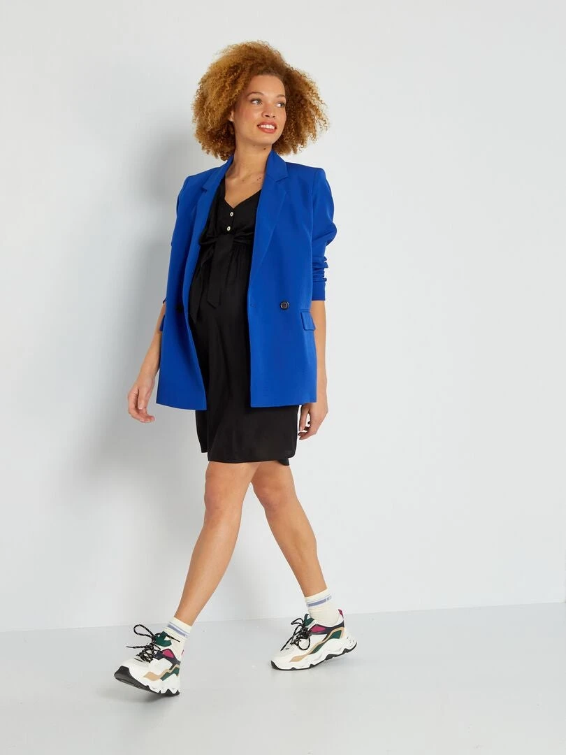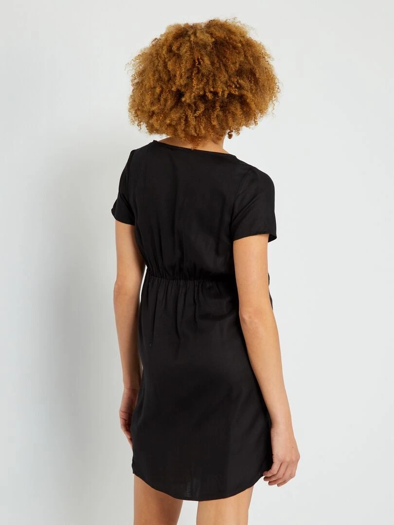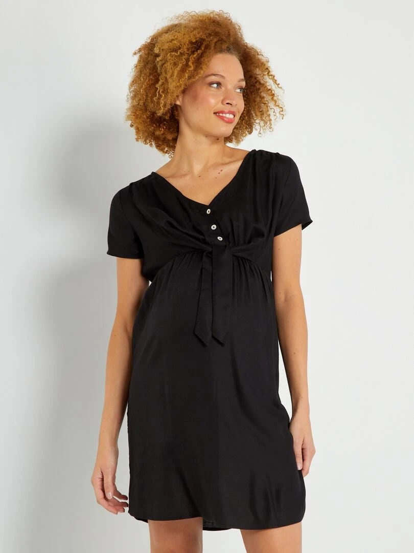 Vestido Corto Premamá Con Escote De Pico – Negro