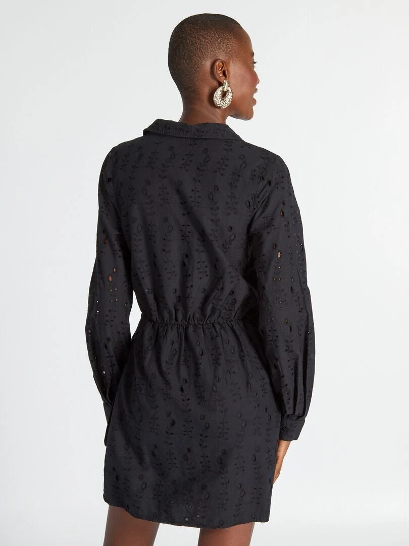 Un vestido ligero y chic con bordado inglés y lazo en la parte delantera.