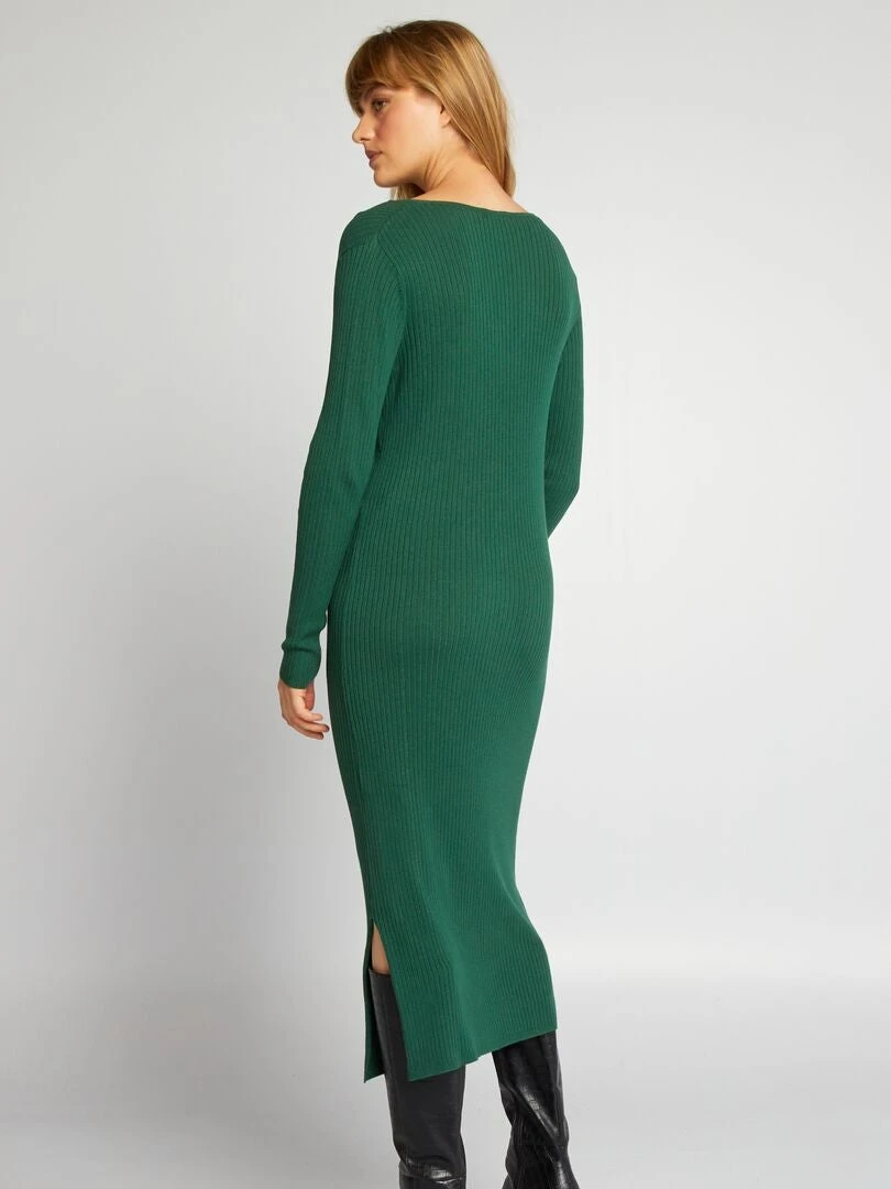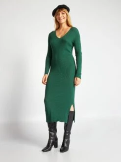 Vestido De Punto De Canalé – Verde