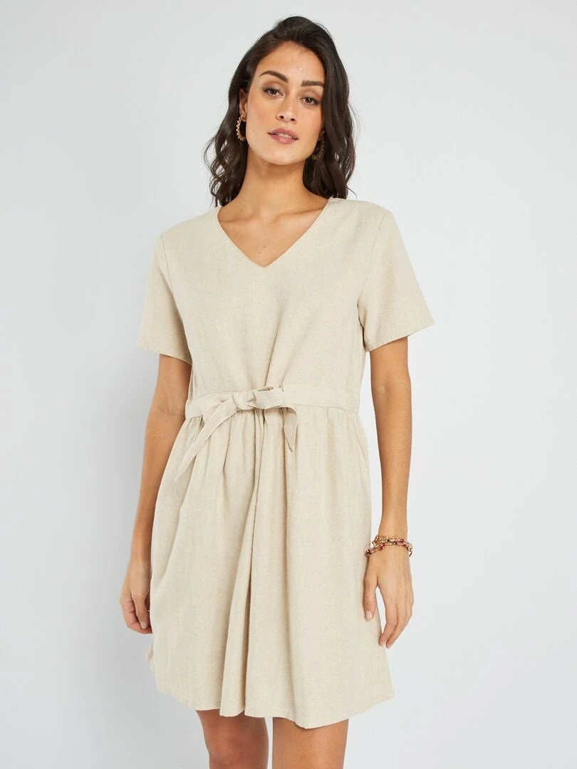 Vestido Entallado De Lino ‘JDY’ – Beige