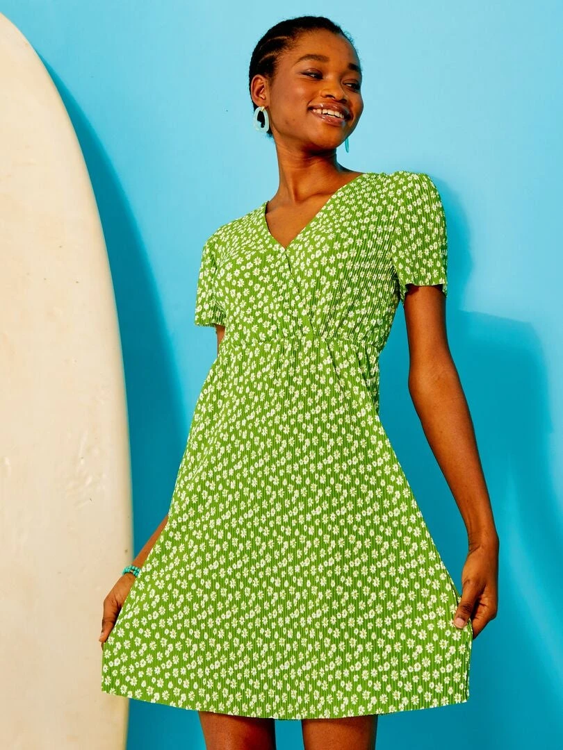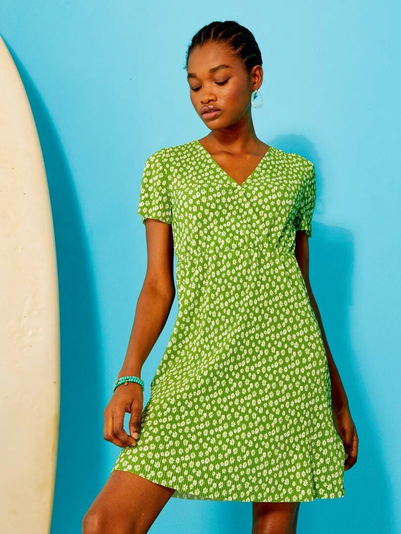 Vestido Evasé Plisado Con Estampado Floral – VERDE