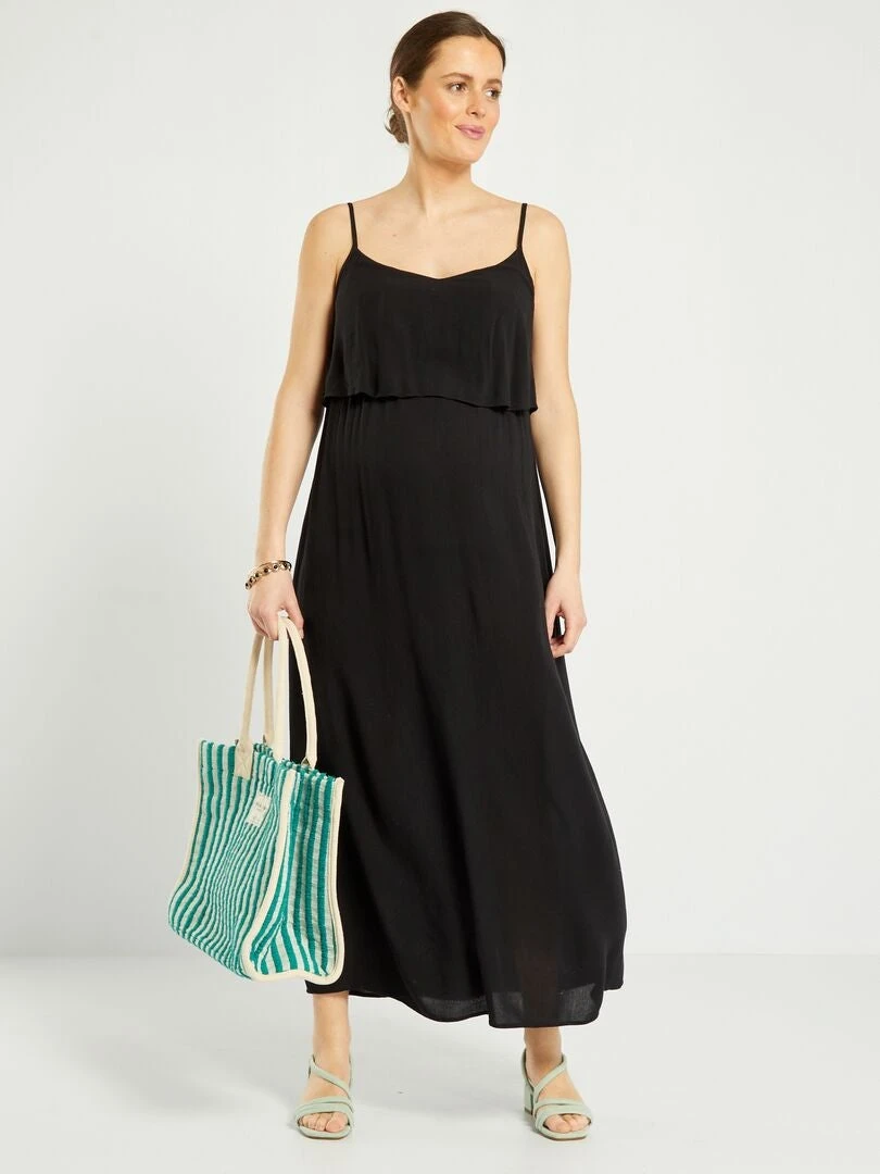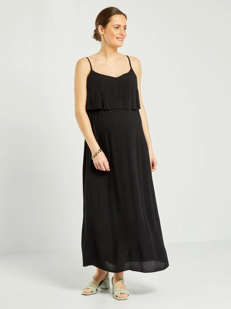 Vestido Largo De Lactancia Con Tirantes Finos – Negro