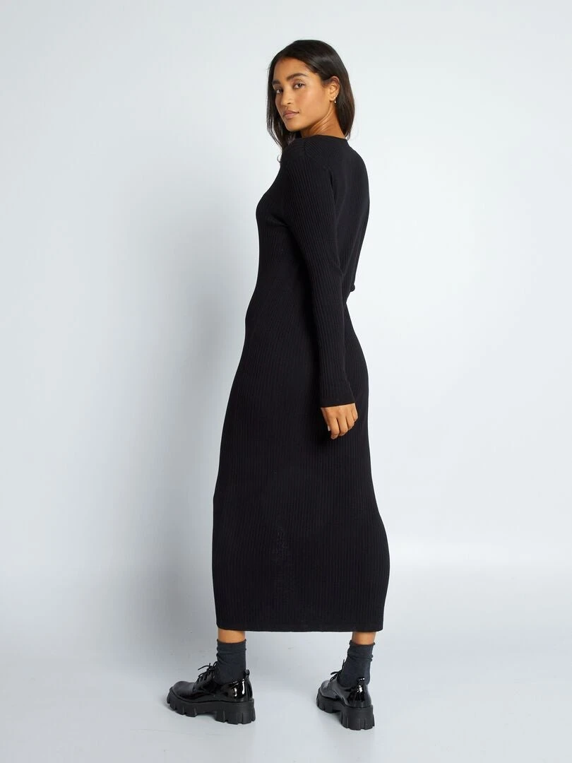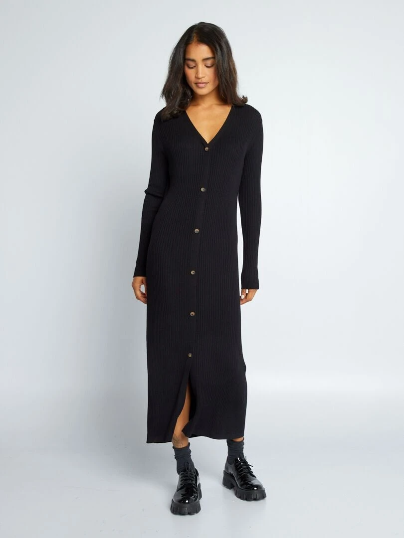 Vestido Largo De Punto De Canalé – Negro
