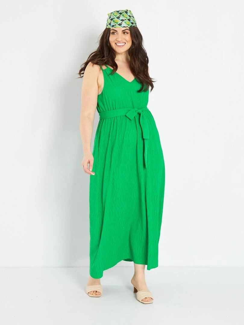 Vestido Largo De Punto De Crepé – Verde Flúor