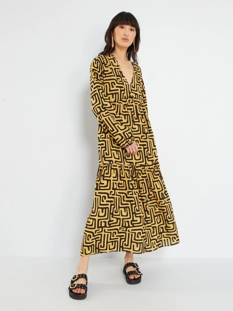 Vestido Largo Estampado – BEIGE