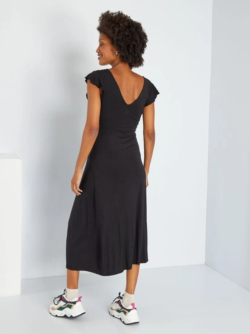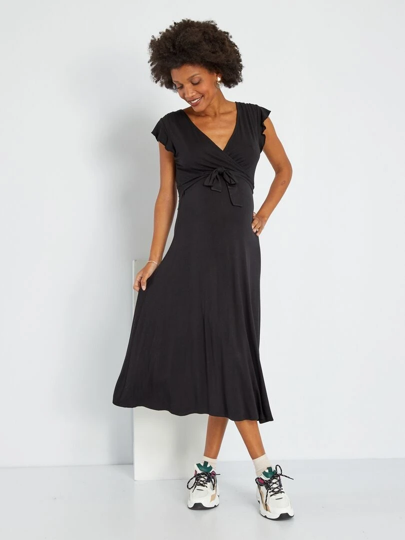 Vestido Largo Premamá Cuello Cruzado – Negro