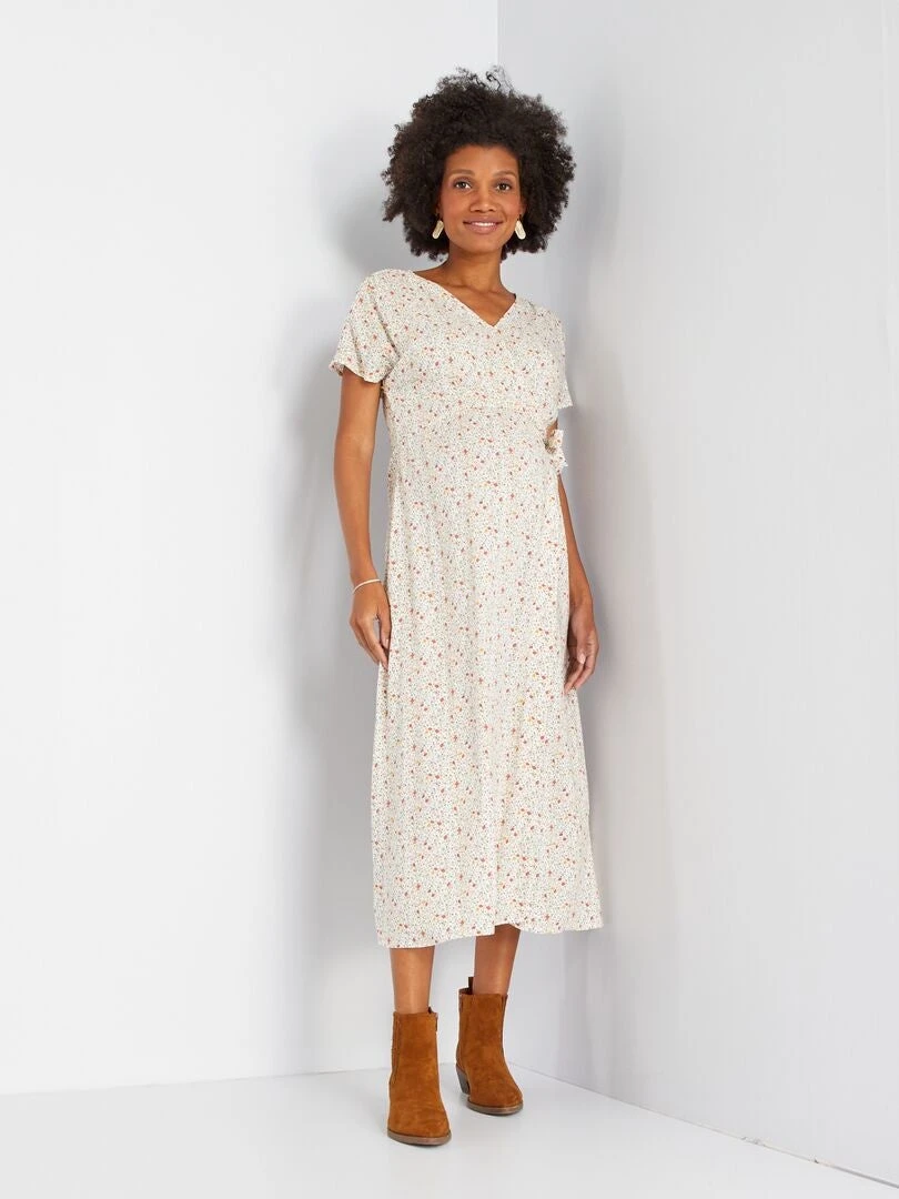 Vestido Largo Premamá ‘flores’ – BLANCO