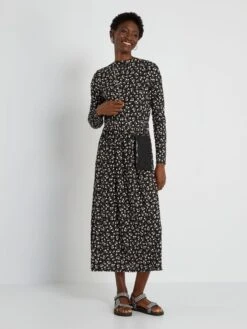 Vestido Largo Vaporoso Con Motivo – NEGRO