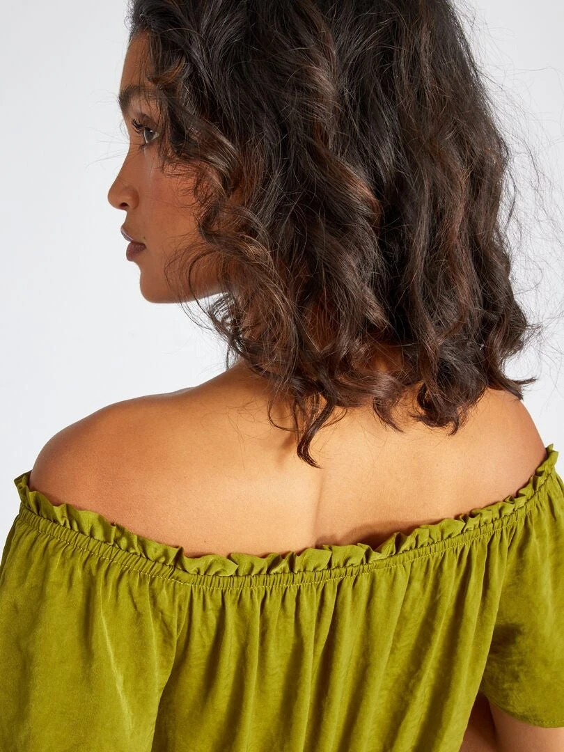 – Cuello bardot fruncido con volantes