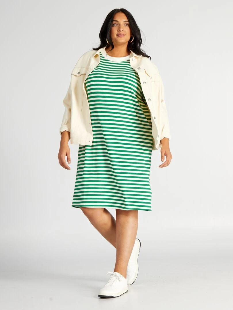 Vestido Tipo Camiseta De Rayas De Manga Corta – VERDE