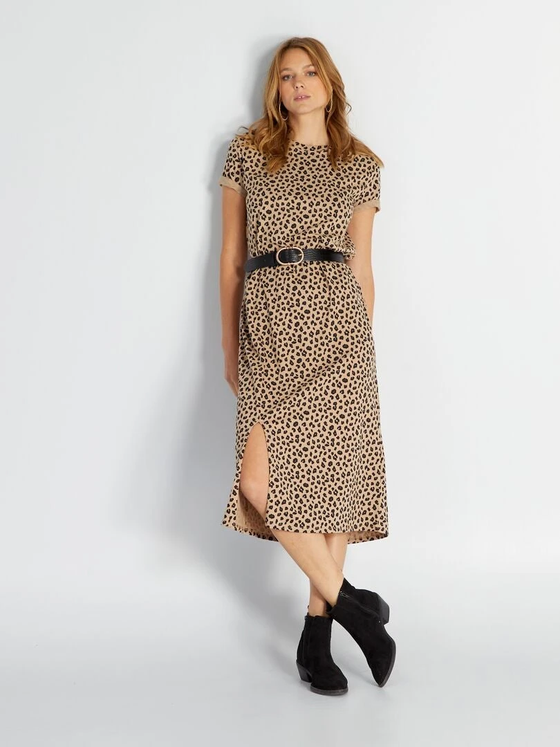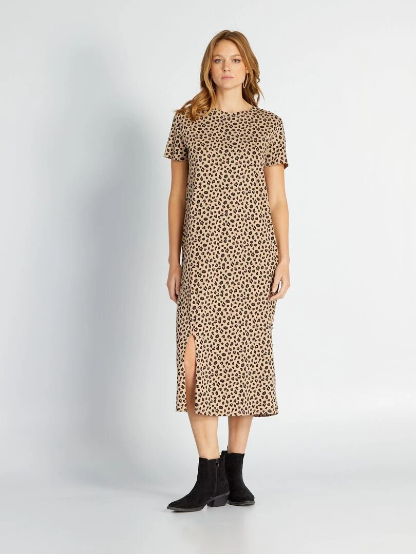 Vestido Tipo Camiseta Midi De Punto – BEIGE