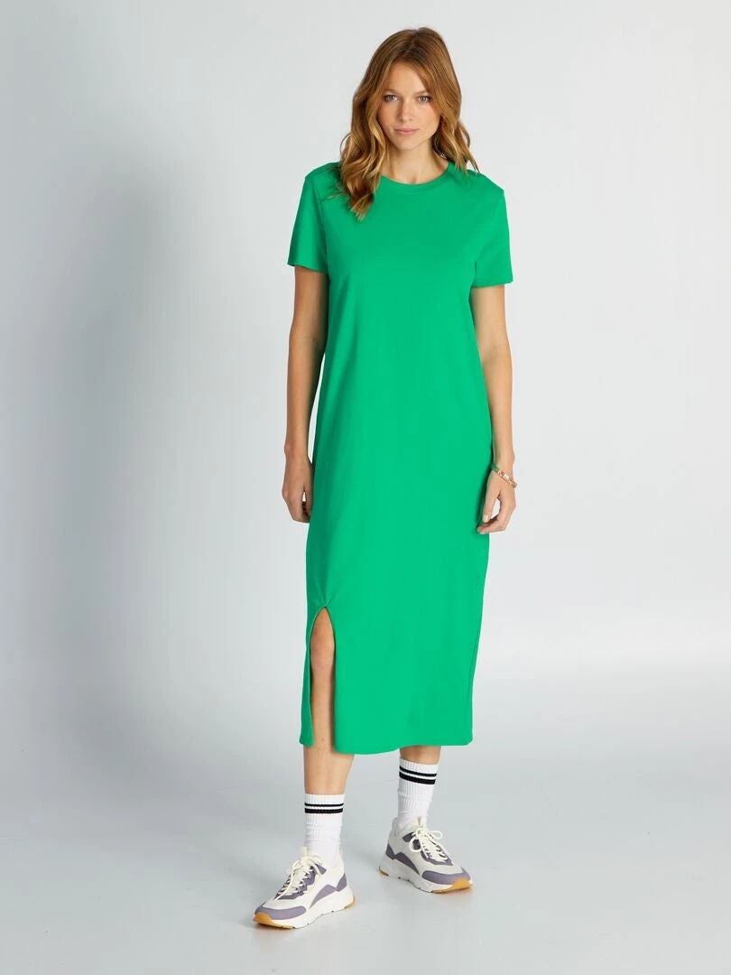 Vestido Tipo Camiseta Midi De Punto – Verde