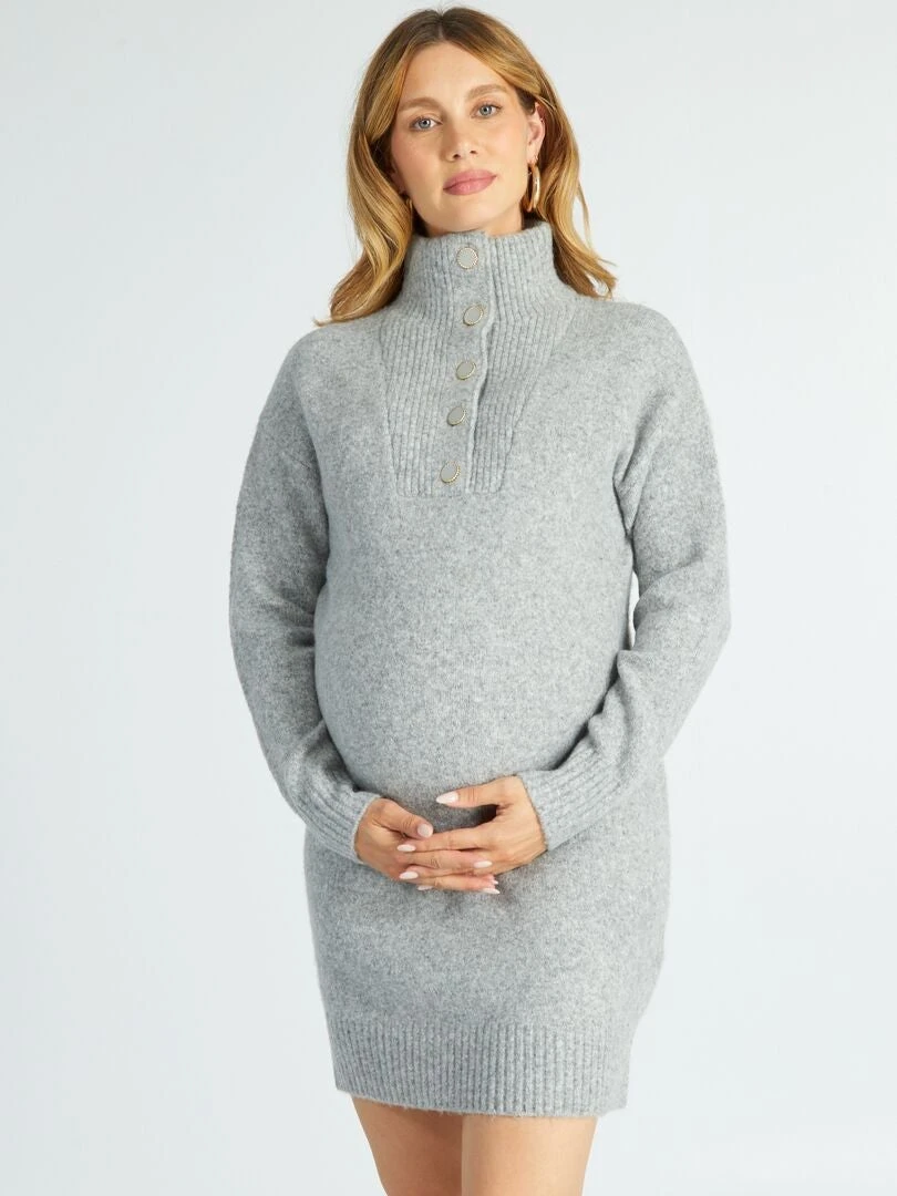 Vestido Tipo Jersey Con Cuello De Cremallera – GRIS