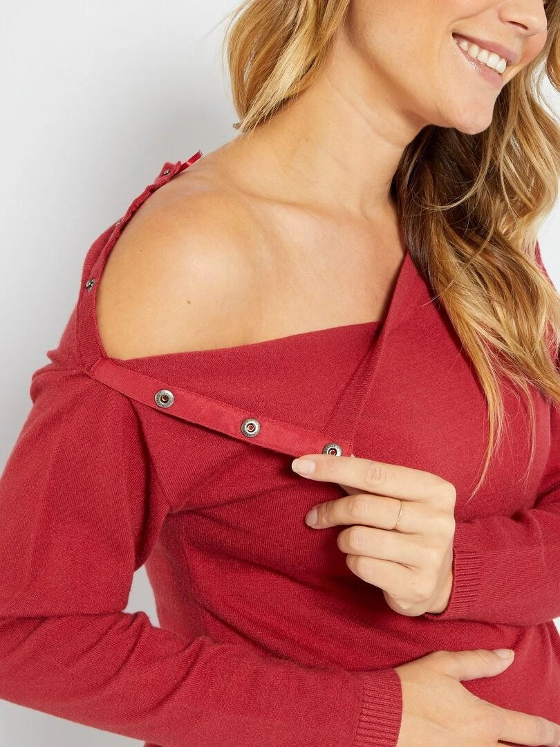 Vestido Tipo Jersey De Lactancia De Punto Suave – Rojo
