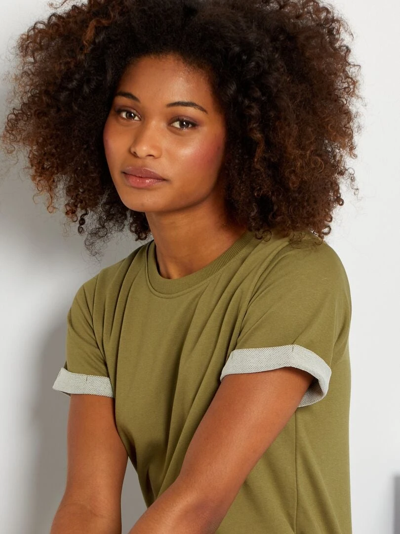 – Cuello redondo con acabados de canalé